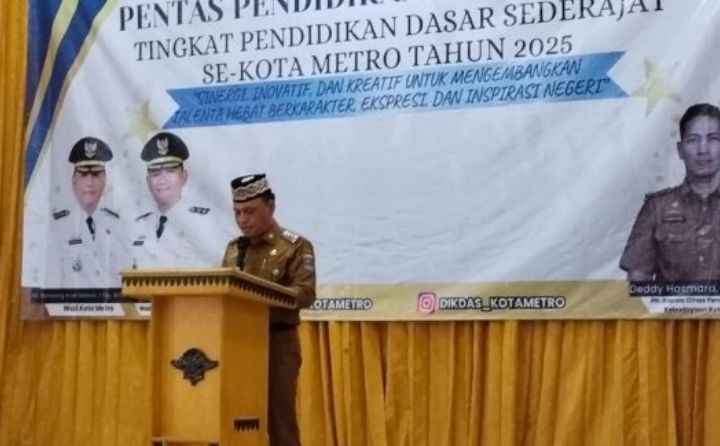 METRO LAMPUNG — Walikota Metro H. Bambang Iman Santoso membuka kegiatan Pentas Festival Tunas Bahasa Ibu (FTBI) dan Pentas Pendidikan Agama Islam (PAI) jenjang SD/MI dan SMP/MTS Tahun 2025 yang berlangsung di LEC Kartikatama pada hari Senin (8/9).